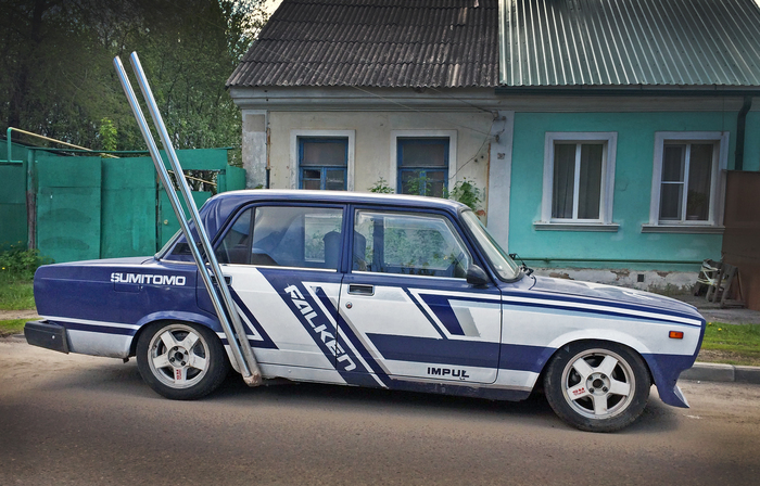В Воронеже заметили автомобиль с достаточно чудаковатым тюнингом. Вполне обычную ВАЗ-2107 украсили наклейками с названием фирмы Falken в духе гоночных авто. Но главная особенность этой машины заключается в ее "оглушителе" - длинных трубах, направленных вверх из-под дна автомобиля. Фото на сайте Pikabu опубликовал воронежец под ником realdjmike.