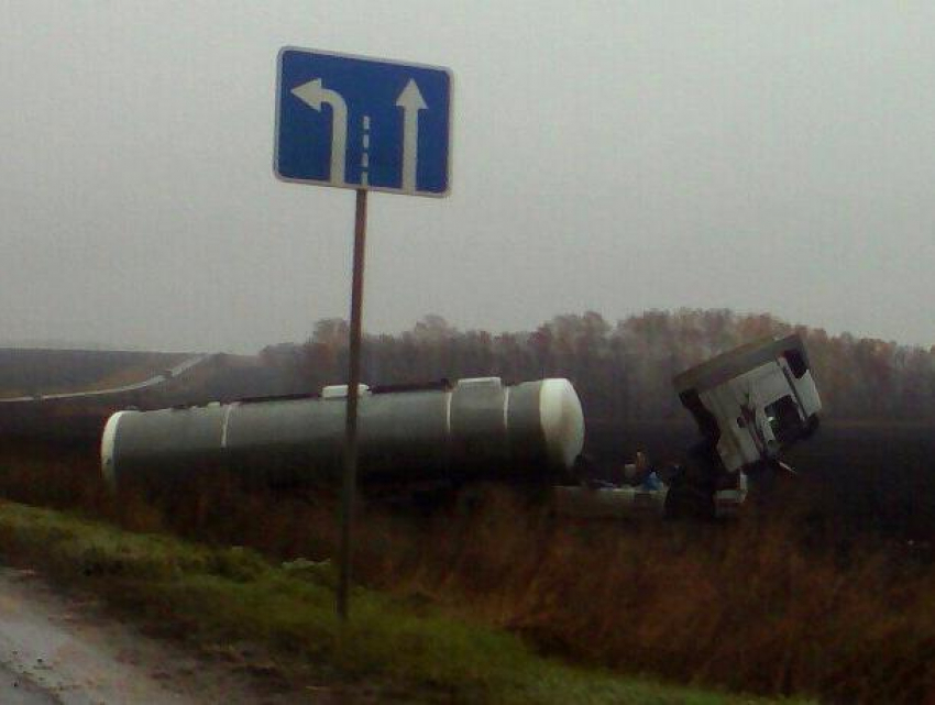 Грузовик с цистерной вылетел с трассы под Воронежем