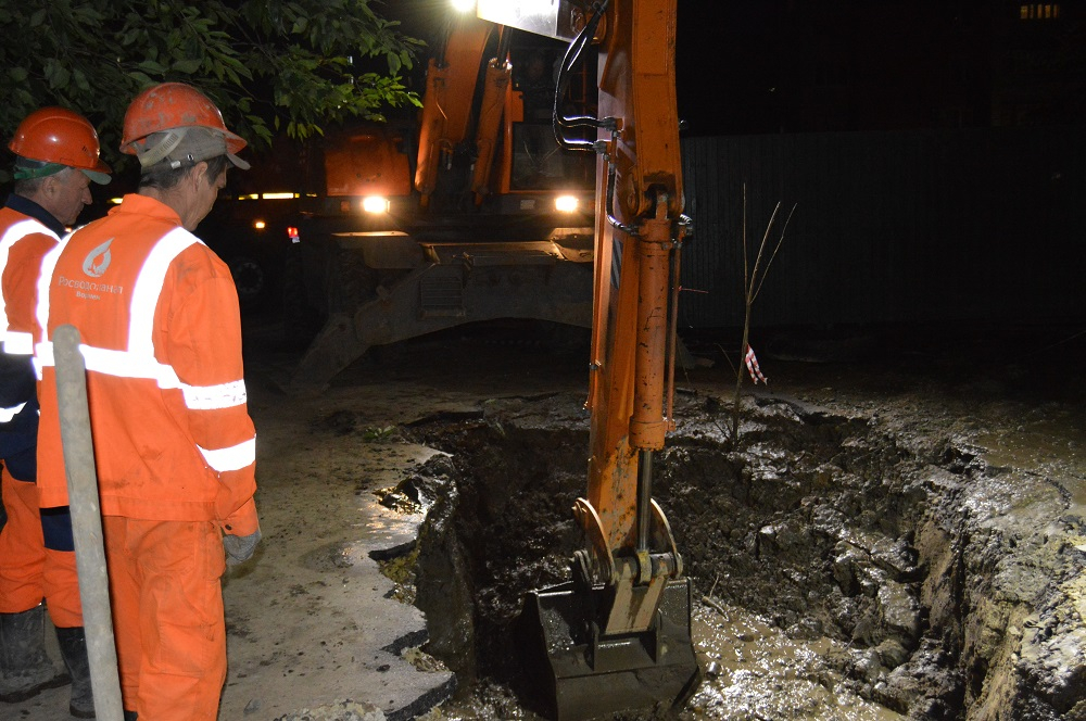 С вечера на улице Хользунова, 115 специалисты «РВК-Воронеж» уже вовсю вели подготовку к ремонту – это первый этап устранения аварии. Работы, кстати, проводили на магистральном водоводе диаметром 500 мм.