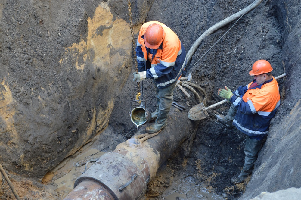 Как только специалисты разработали котлован нужной глубины и увидели трубу, к делу приступили слесари, которые принялись очищать трубопровод от грунта. Лопатами и руками. Крайне осторожно и аккуратно.