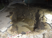 И здесь произошло как раз то, о чем мы говорили ранее, – котлован начал заполнятся водой. Такое, оказывается, возможно и при перекрытых задвижках. Так как целостность трубы нарушена, происходит интенсивный выброс. Также из-за давления грунта лопнул «раструб» - монтажное расширение на конце трубы, откуда тоже пошла вода прямиком в котлован.