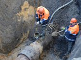 Как пояснили специалисты, продолжать ремонт было невозможно до того момента, пока котлован не осушили. Это просто опасно, ведь его стенки может размыть. И все рухнет (так потом, кстати, и произошло). Поэтому специалисты оперативно начали устанавливать откачивающую технику.