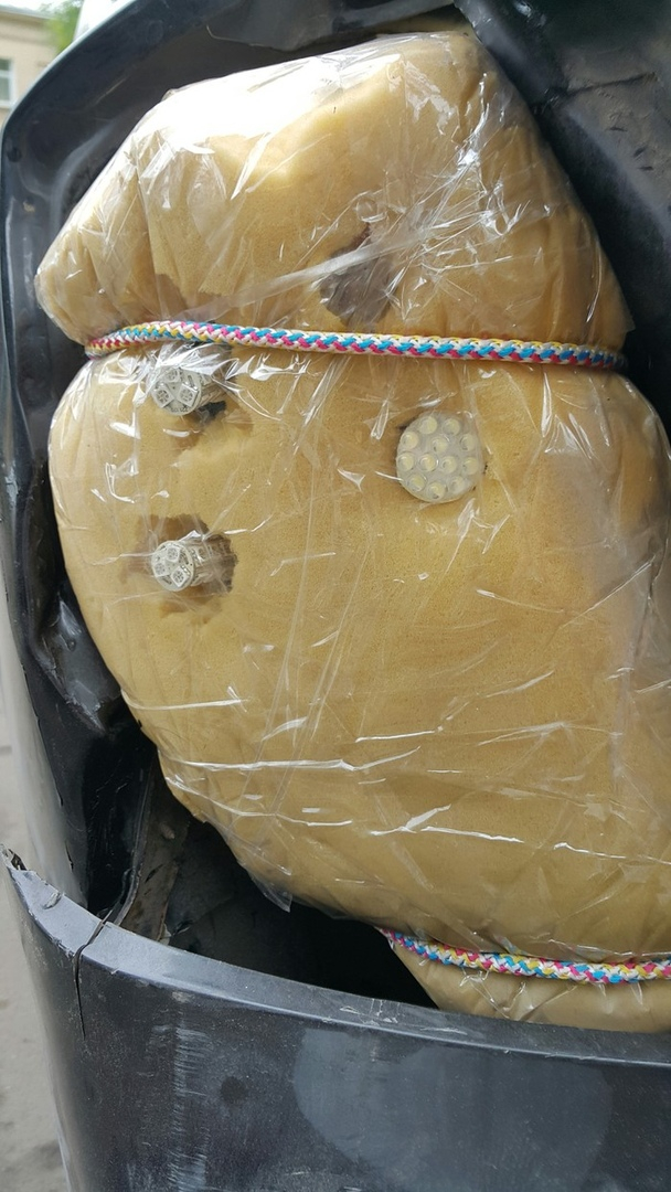 В одном из дворов Воронежа сфотографировали Chevrolet Lacetti, владелец которой интересно подошел к вопросу ремонта. На снимке видно, что у иномарки отсутствует фара, водитель решил не покупать новую и отремонтировал ее с помощью губки. В нее он ставил светодиоды, чтобы показывать другим участникам движения свои маневры и не нарушать правила дорожного движения.