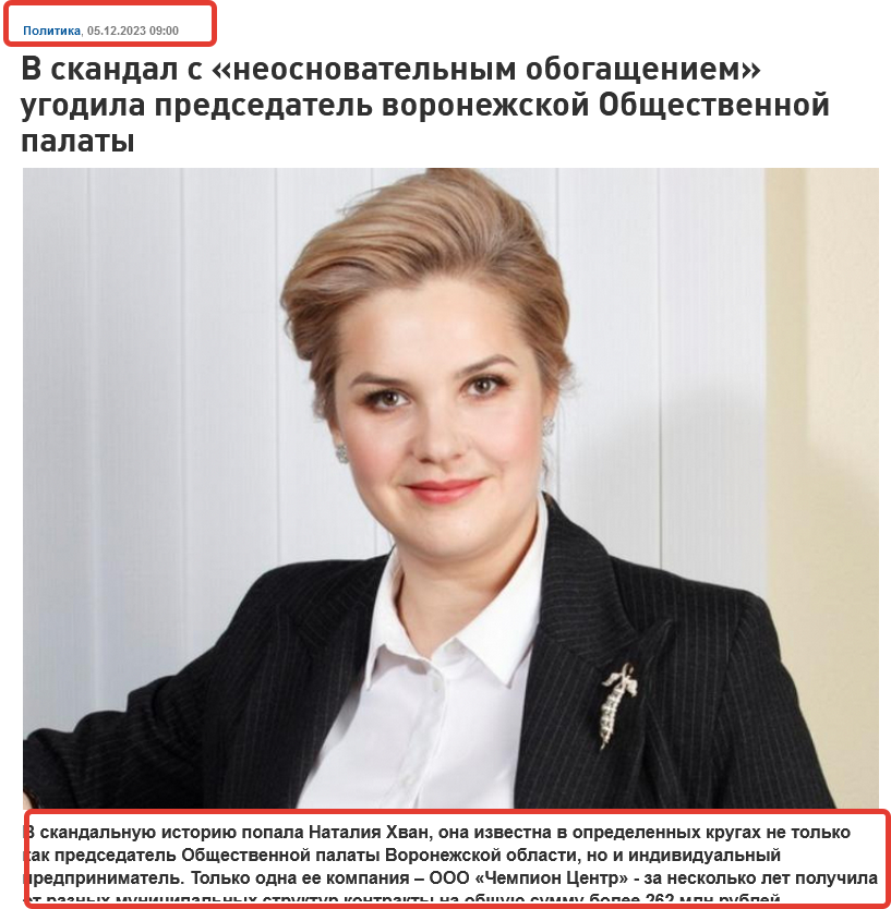 Воистину надо иметь «чемпионский характер», чтобы в 11 муниципальных аукционах получить максимальный результат, то есть, добиться 100 процентной победы. Был ли в этом задействован «административный ресурс» председателя Общественной палаты Воронежской области Наталии Хван - сказать и доказать невозможно. Хотя еще не забыта скандальная история, в которую угодила «общественница» осенью 2023 года, о ней позже подробно рассказал «Блокнот».