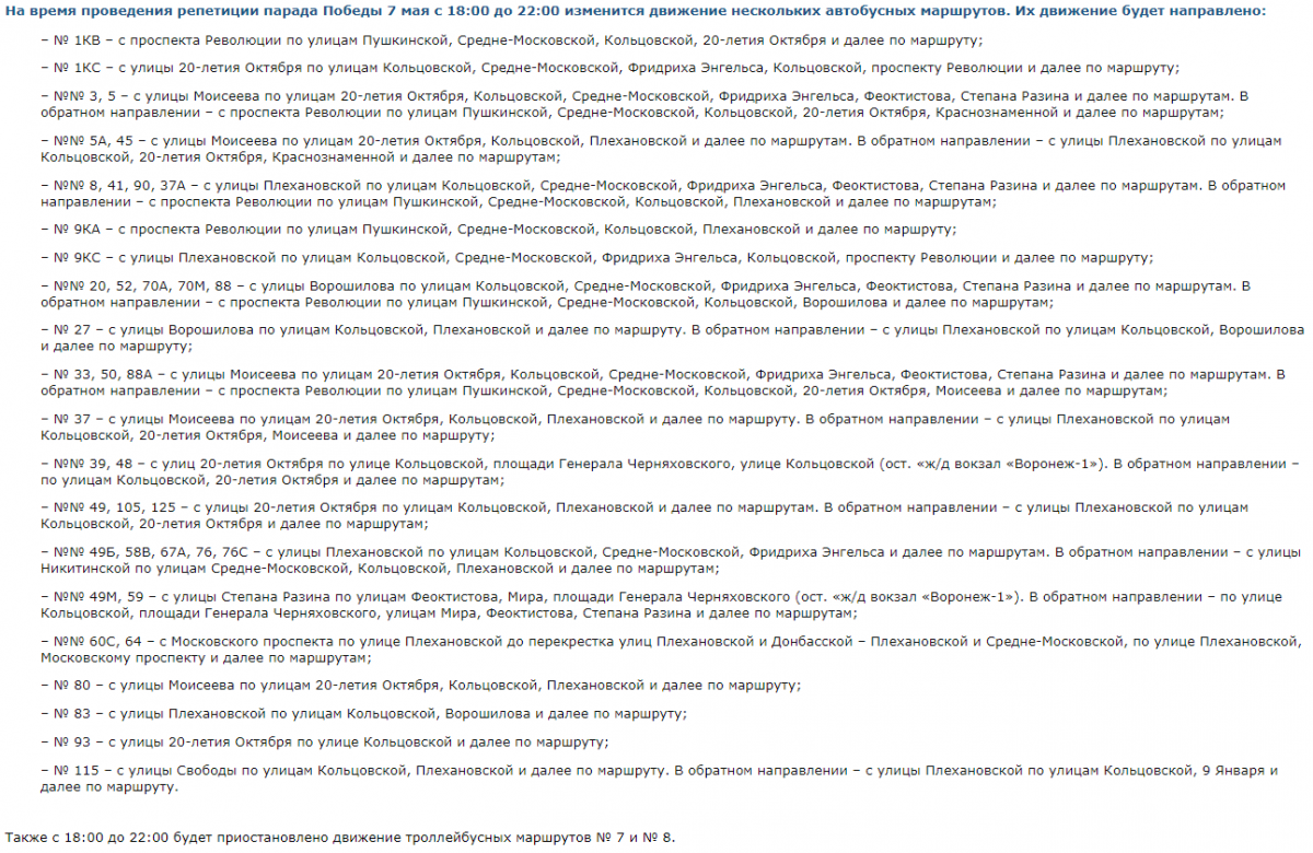 Как будут ходить маршрутки во время генеральной репетиции парада Победы в Воронеже