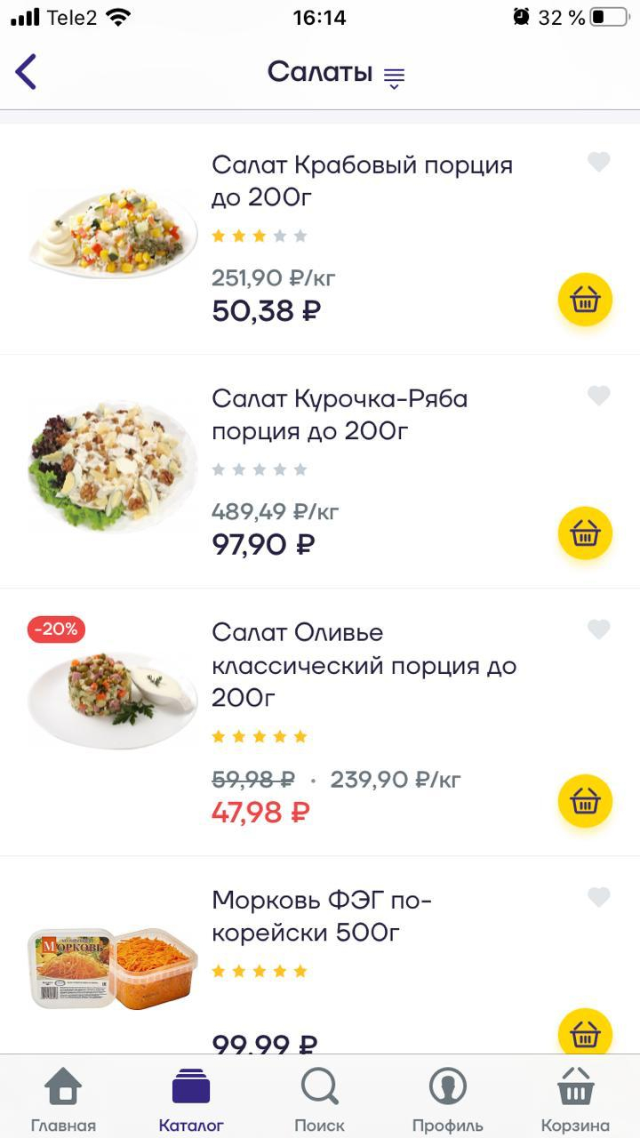 В приложении доступно около 20 000 товаров из ассортимента магазинов «Лента». В наш заказ вошли несколько готовых салатов, фирменные лепешки «Ленты», лампочки, антисептическое средство для рук, упаковка батареек по акции, и одноразовая посуда. Сразу отметим, что в каталоге товары поделены по категориям, что удобно для быстрого поиска нужного товара. В категории «Хит цена» можно выбрать то, что сейчас со скидкой. Плюсом нам показалось то, что к заказу можно оставить комментарий. Так как дома спал маленький ребенок, в описание к заказу мы оставили комментарий, чтобы курьер связался с нами по телефону, а не звонил в дверь.