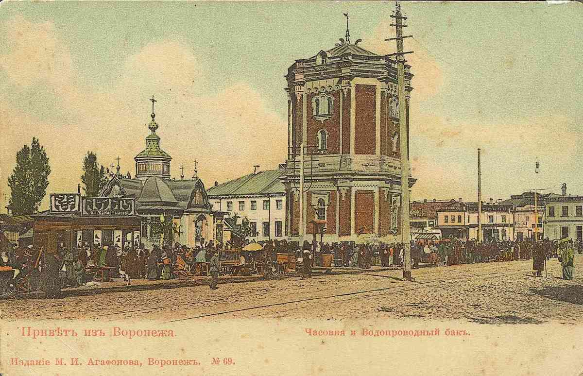 Через несколько лет, в 1892 году, в это место перевели Толкучий рынок. Торговцы этой площадки построили часовню во имя Смоленской иконы Божией Матери. А еще раньше на площади была построена водонапорная башня. Так постепенно сложился архитектурный ансамбль этого места. Однако до того, чтобы оно стало главным в Воронеже было еще далеко.