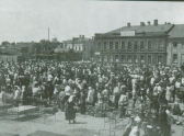 Когда началась Великая Отечественная война, 7 ноября 1941 года на площади XX-летия Октября прошел парад подразделений Юго-Западного фронта. Они отступили с Украины. На параде присутствовал командующий фронтом С. К. Тимошенко.