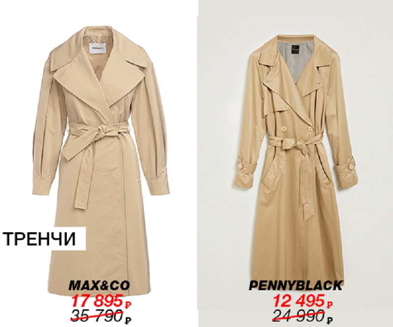 1. Тренч появился во время Первой мировой войны как альтернатива шинелям британских солдат. Стильный плащ с высоким двубортным воротником – базовая вещь в гардеробе любой модницы. Аргумент в пользу выбора данного предмета одежды – его универсальность. Тренч, несмотря на ярко выраженный оттенок стиля милитари в дизайне, отлично сочетается как с повседневными джинсами, так и с деловым костюмом. В моде по-прежнему природные оттенки, поэтому верным решением будет остановить свой выбор на бежевом цвете, который остается классикой жанра. Наиболее актуальный фасон сейчас – свободный крой, длина – ниже колена. Тренч марки Pennyblack – вещь вне времени, а со скидкой в 50% это будет особенно выгодным вложением в ваш гардероб.