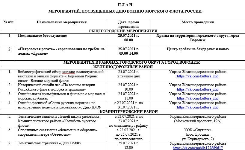 Также на День ВМФ запланировано множество других мероприятий в районах столицы Черноземья. Представляем их список: