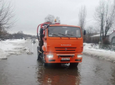 Работа комбинатов продолжается и днем. Коммунальные службы сгребают и вывозят снег, очищают решетки ливневых канализаций, специальная водооткачивающая техника помогает быстрее устранять подтопления.