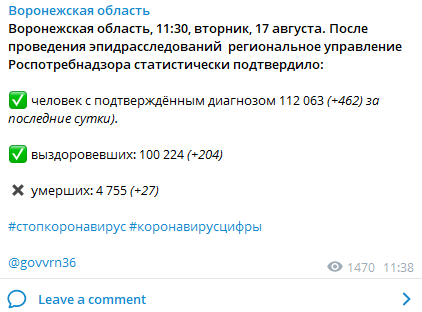 Как выглядела ковидная повестка ровно год назад 17 августа в Воронеже