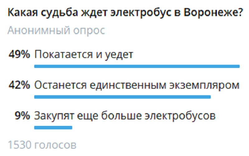 49% опрошенных считают, что электробус покатается эти 3 месяца, уедет и больше не вернется