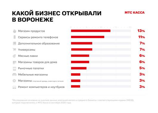 Специалисты выяснили, какой малый и средний бизнес местные жители чаще всего открывали в ковидном Воронеже в сентябре. В основу исследования легли данные МТС Кассы.
