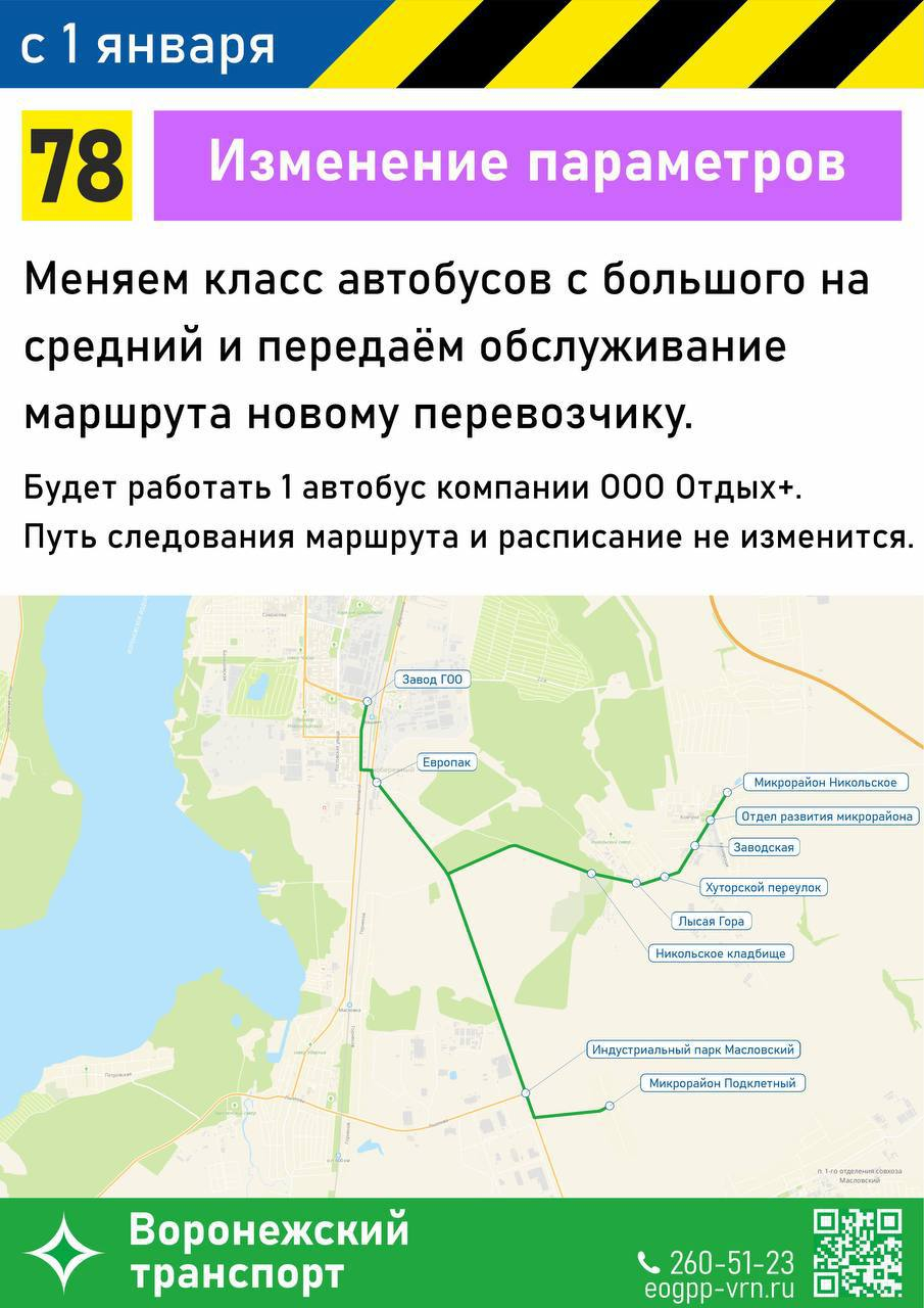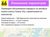 Маршрут №66 будут обслуживать автобусы малого класса. В профильном управлении обещают увеличить их количество – до 14 единиц. Новым перевозчиком стала Воронежская транспортная компания.
