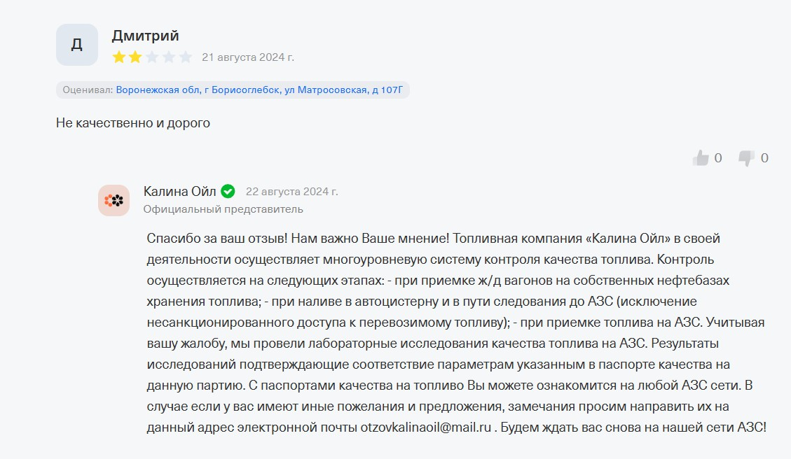 Нельзя исключать что руководство «Калины Ойл» и без отзывов в курсе того негатива, о котором сообщают люди. Просто, возможно, не планирует в связи с этим ничего предпринимать. Может быть такое? Теоретически, да.