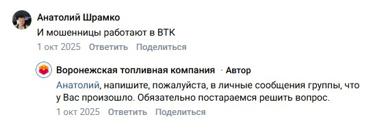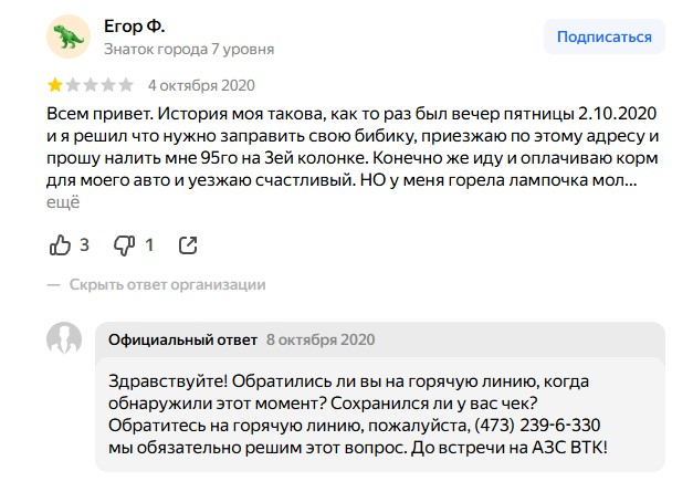 Можно ли поступать иначе при таком объеме жалоб? Скажем, конкуренты «Калины Ойл» из «ВТК» - стараются. Авторам негативных постов предлагают связаться напрямую, или по горячей линии, рассказать, где и как столкнулись с негативом, пытаются (если, конечно, получится) решить проблему.