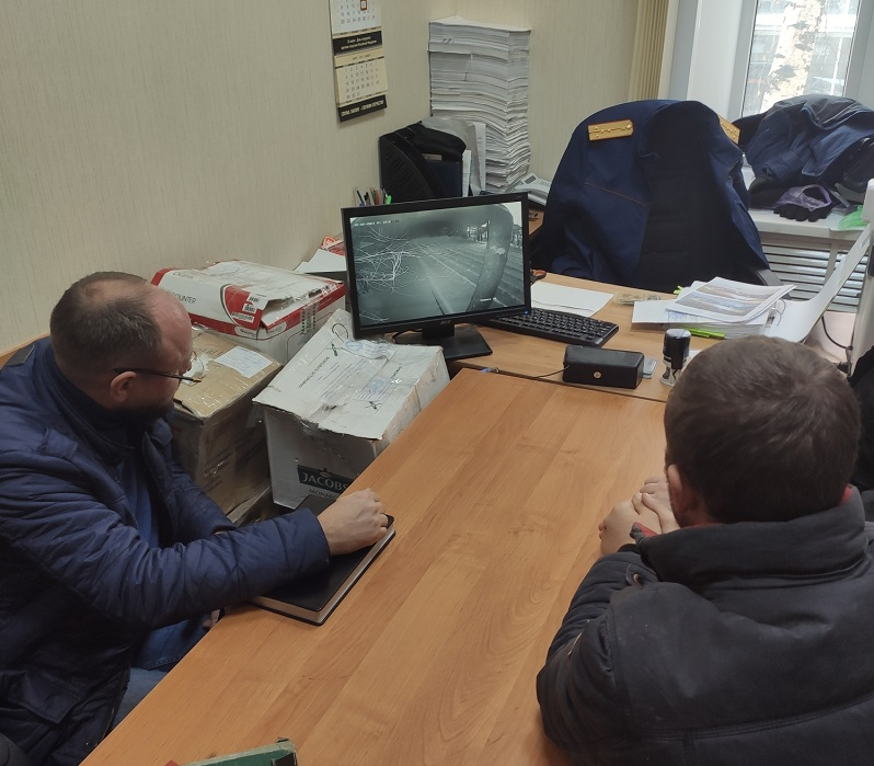 Селютин после задержания вместе со своим адвокатом смотрят записи с камер видеонаблюдения
