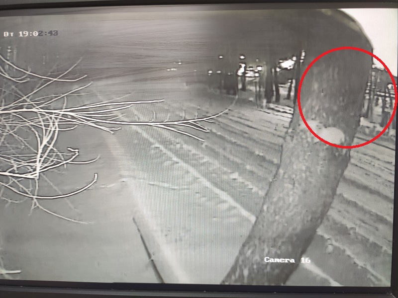 Камера зафиксировала убийство. Самого нанесения ударов не видно, оно скрыто за деревом.