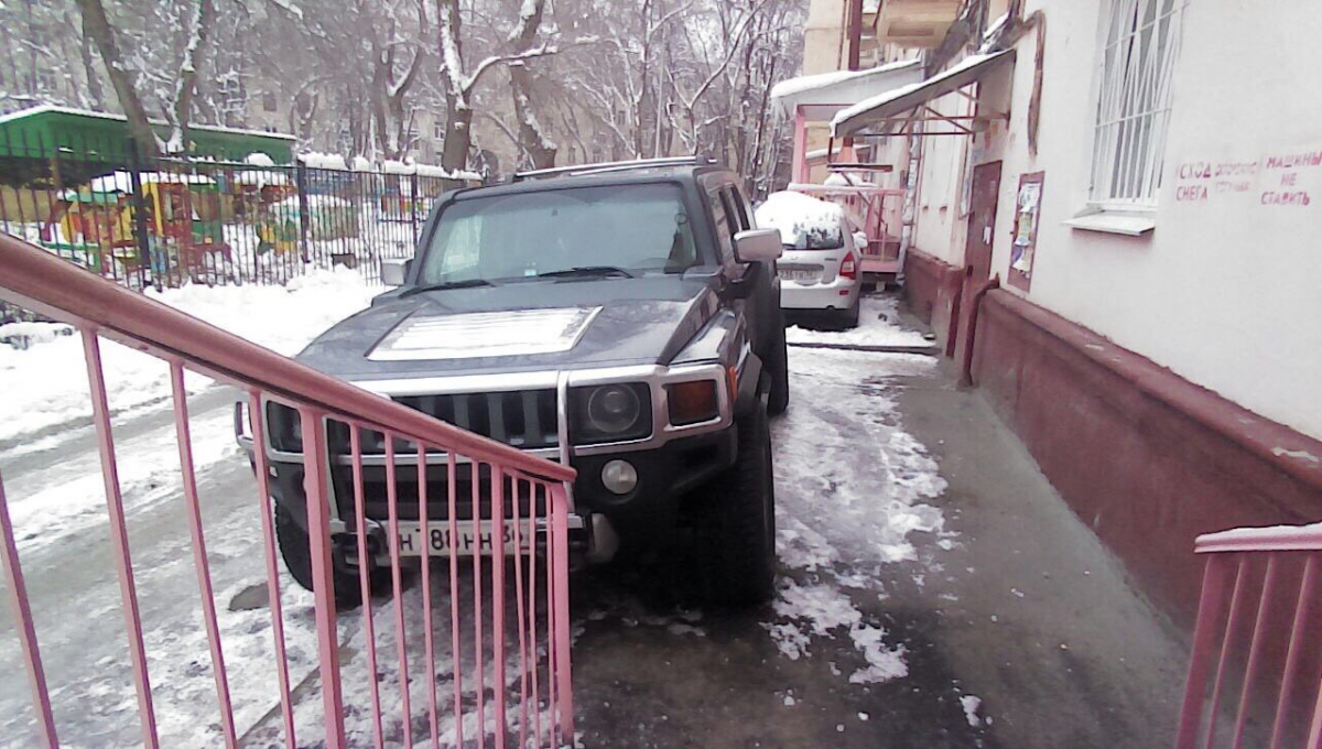 В редакцию «Блокнот Воронеж» обратилась группа местных жителей. Они сказали, что ежедневно водят своих малышей в детский садик №18 на улице Феоктистова, 4. Однако зайти в дошкольное учреждение им постоянно мешает наглый водитель элитного внедорожника «Хаммер». Свое дорогостоящее авто хозяин ставит вплотную к крыльцу садика.