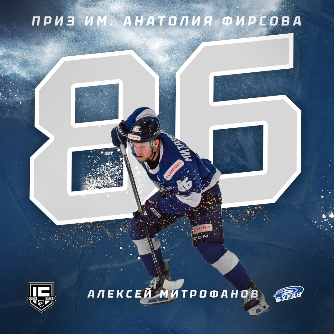 Хоккеисты Всероссийской хоккейной лиги признали нападающего воронежского «Бурана» Алексея Митрофанова лучшим игроком ВХЛ. Капитану вручили приз Анатолия Фирсова сегодня, 6 июня, на церемонии в честь окончания сезона.
