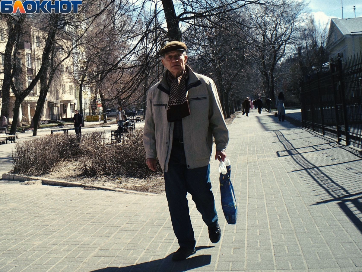 Рядом с ним - другой пожилой мужчина, более уютный и трогательный: дедуля в шарфике, с пакетом в руках, очевидно, возвращающийся из магазина.