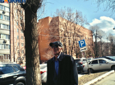 В объективе - брутальный дедушка в кепке и солнцезащитных очках брутальной походкой шел по своим делам.