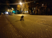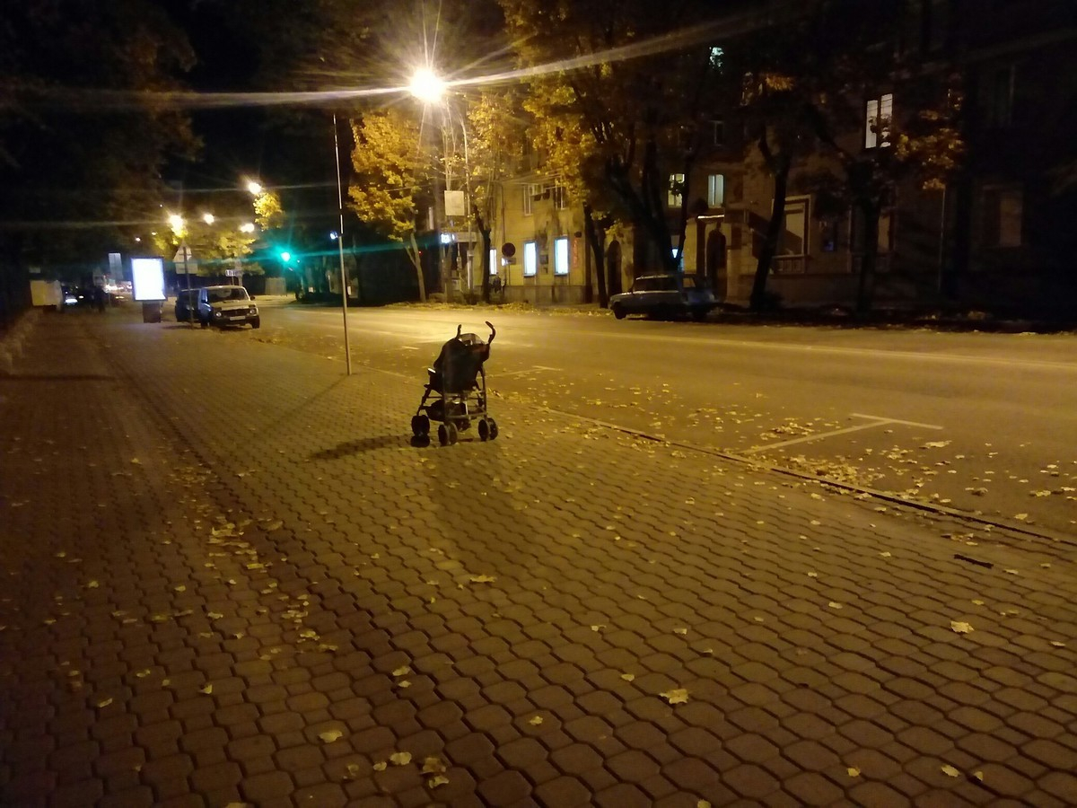 Темного цвета коляску кто-то оставил на тротуаре у парка Орленок. Ночью, под фонарем, она напоминает реквизит из фильма ужасов — кажется, что через мгновение она самостоятельно покатится по улице. В соцсетях горожане предположили, что одинокая коляска ждет своего ребенка.