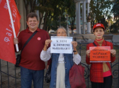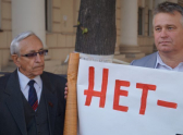Тем временем с другой стороны клумбы у театра Оперы появились три человека в штатском, которые принялись снимать митингующих на видео. Люди с транспарантами стали передавать им приветы. После этого три молодых человека, один из которых всё время оставался в чёрных очках, сели в чёрную иномарку и ретировались. До этого корреспондент «Блокнот Воронеж» успел спросить троицу, откуда они, и получил ответ: «Мы тоже из КПРФ».