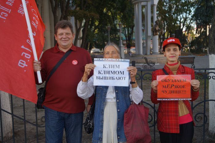14 сентября воронежские коммунисты вышли на акцию протеста против «неадекватных выборов». Каре из трёх десятков партийцев и, присоединившихся к ним представителей реготделения НДП, сначала построилось у памятника Пушкину. Но затем «протестанты» решили, что их транспаранты не видны из окон облизбиркома и передвинулись на площадку у театра Оперы и Балета.