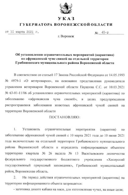 Не успела Воронежская область оправиться от коронавируса, как нагрянула Африканская чума свиней. Вспышку заболевания зарегистрировали на территории Грибановского района, и она уже повлекла за собой новый губернаторский указ.