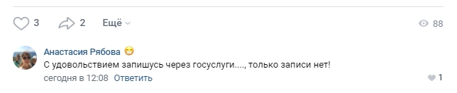 — С удовольствием запишусь через Госуслуги, только записи нет! — метко парировала некая Анастасия Рябова в комментариях под постом в официальной группе департамента.