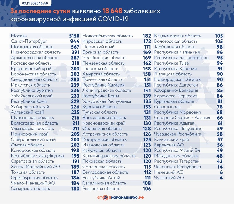 3 ноября оперативный штаб по борьбе с коронавирусной инфекцией в Воронежской области опубликовал свежие данные по новому заболеванию. Согласно им, за последние сутки Covid-19 обнаружили в регионе у 302 человек. Соответственно, в настоящее время общее количество зараженных ковидом с момента распространения пандемии в области достигло 25 973 пациентов.