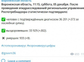 Теперь рассмотрим наиболее пугающую статистику, которую 5 декабря опубликовал региональный оперативный штаб по борьбе с распространением коронавируса. Касается она летальных исходов в Воронежской области. Оказалось, что за последний день ковид унес сразу девять жизней. Днем ранее аналогичный показатель был на уровне 15 человек.