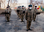 Под окнами ветерана прошлась знаменная группа и парадный расчет. Оркестр играл «Прощание славянки», «Катюшу» и «Смуглянку».