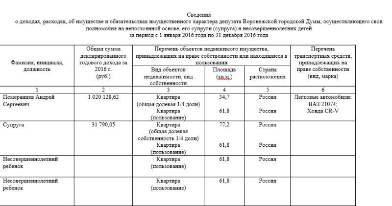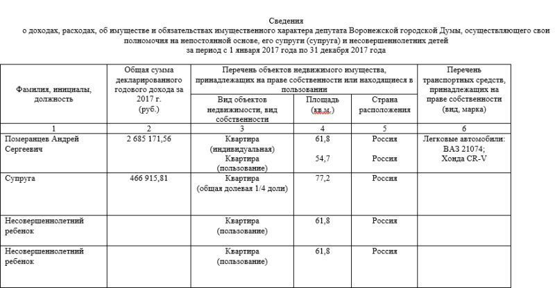 Если сравнить декларацию о доходах Андрея Померанцева за 2017 год с его аналогичным документом за позапрошлый период, то станет понятно, что он разбогател на 1,6 млн рублей. Так, в 2016 году депутат заработал 1 млн 20 тыс. 128 рублей (или 85 тыс. 10 рублей в месяц). Недвижимость же и транспортные средства у Померанцева в 2016 году были те же самые, что и в прошлый период.