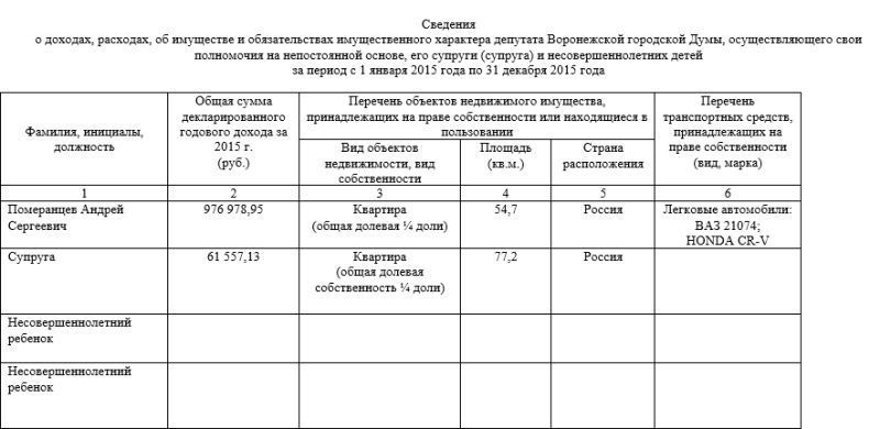 Около детей Андрея Померанцева в той декларации стояли пустые графы.