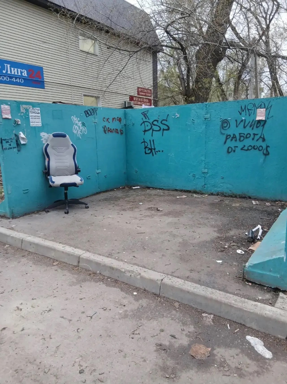 Не то офисное, не то геймерское кресло вполне себе товарного вида и горы из палок, пластиковых пакетов и других дивных штучек заметили на обочине в воронежском ЖК «Дельфин». Точнее, мусор накидали на обочину, а вот креслице аккуратно поставили на пятачке с забитыми контейнерами ТКО. Такую абсурдную картину засняли читатели «Блокнота».