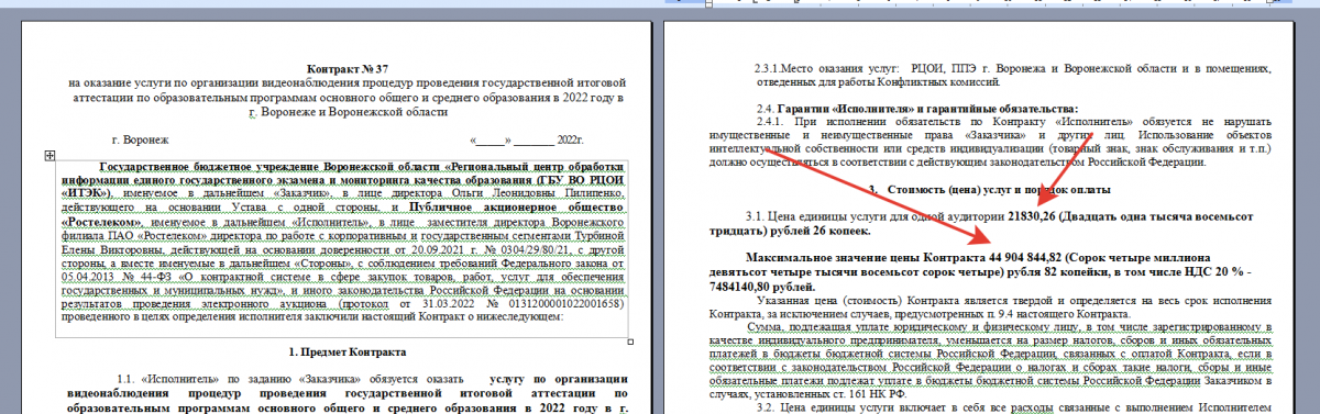 Тогда же, судя по аналогичному прошлогоднему контракту (на сумму 44,9 млн рублей), должны были закончиться услуги по хранению видеозаписей ЕГЭ 2022 года. Для одной школьной аудитории данный сервис стоил почти 22 тысячи рублей.