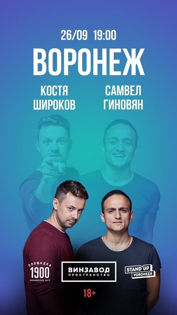 Гиновян и Широков в Винзаводе. Питерские комики в уютном пространстве представят воронежцам свои лучшие шутки и монологи. Организаторы обещают прекрасный и смешной вечер. Начало в 19:00.