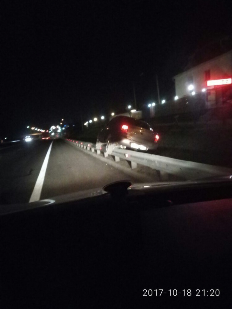 Воронежские автомобилисты обсуждают ДТП, которое, по словам очевидцев, произошло в деревне Галкино в Рамонском районе. На опубликованной в Сети фотографии видно, что легковушка буквально «оседлала» отбойник.