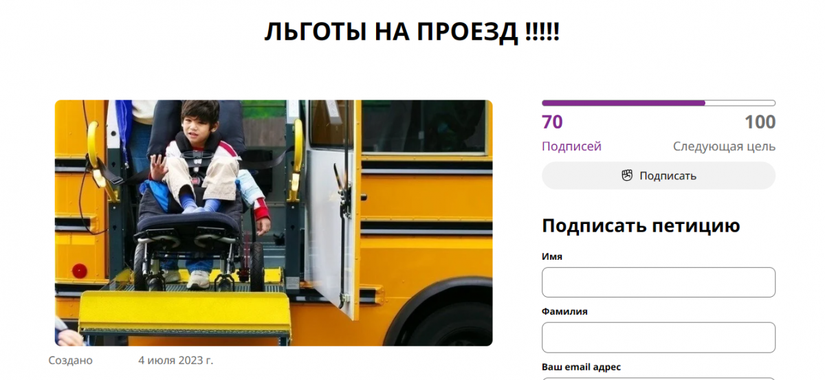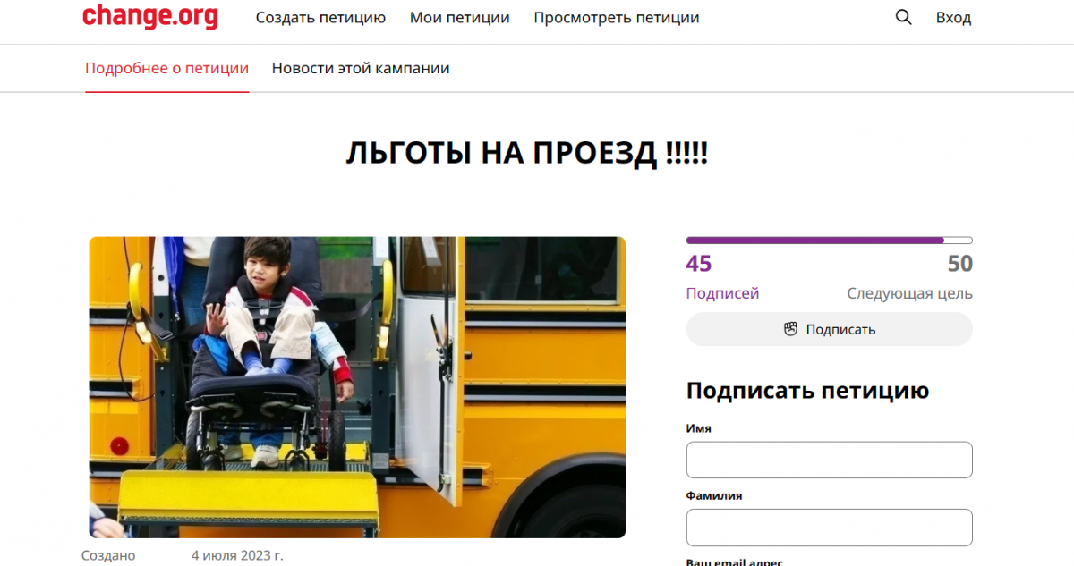 Граждане создали петицию. На сегодняшний день ее подписали 45 человек. Автор, кстати, отметил, что льготный проезд для маломобильных людей внедрен в Липецкой области, Москве и Московской области. Но в Воронежской области невозможно этим воспользоваться, так как общественный транспорт является частным.