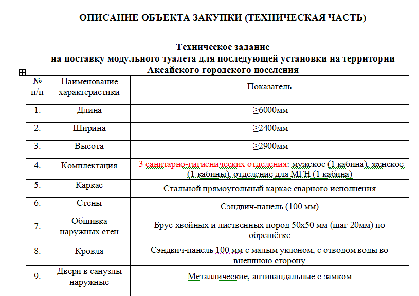 скриншот сайта госзакупок, техническая документация по приобретению туалетного модуля для Петровской набережной