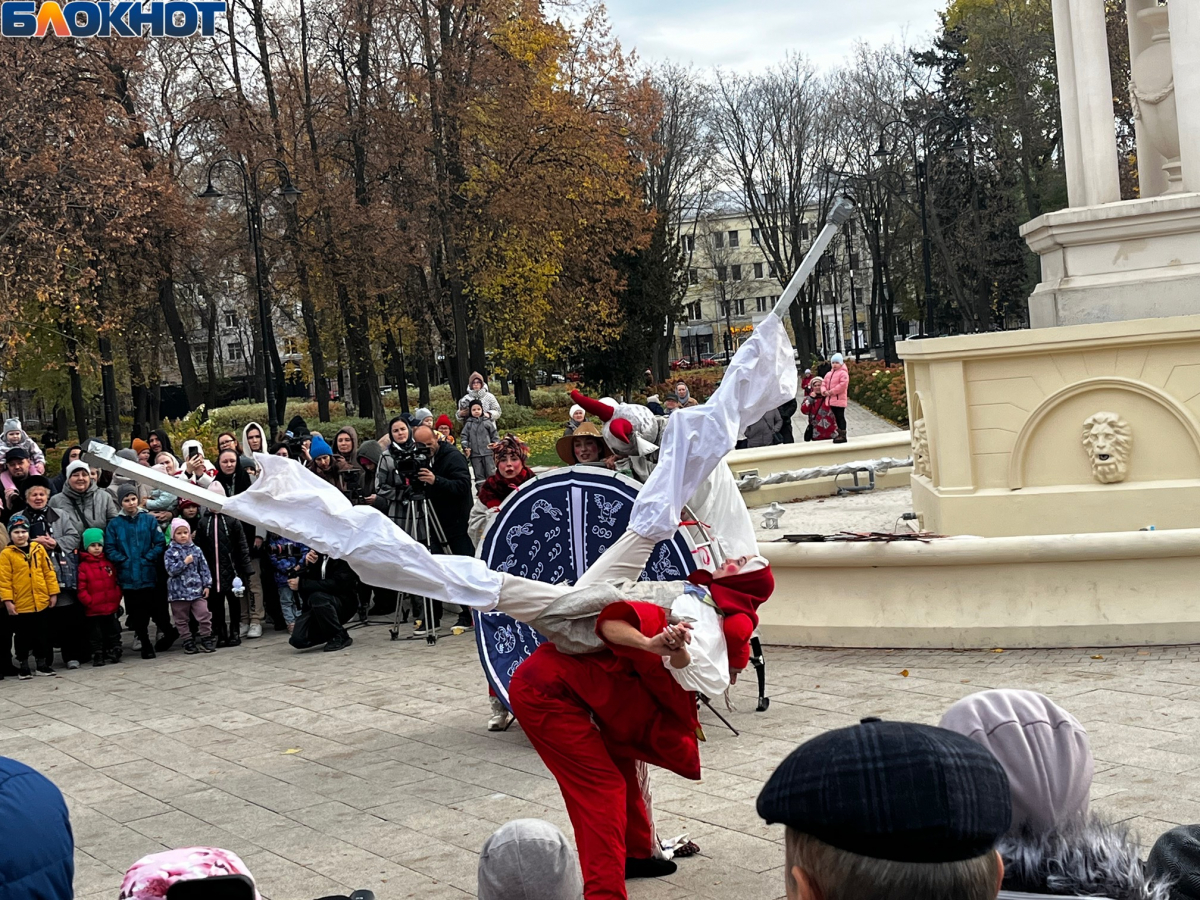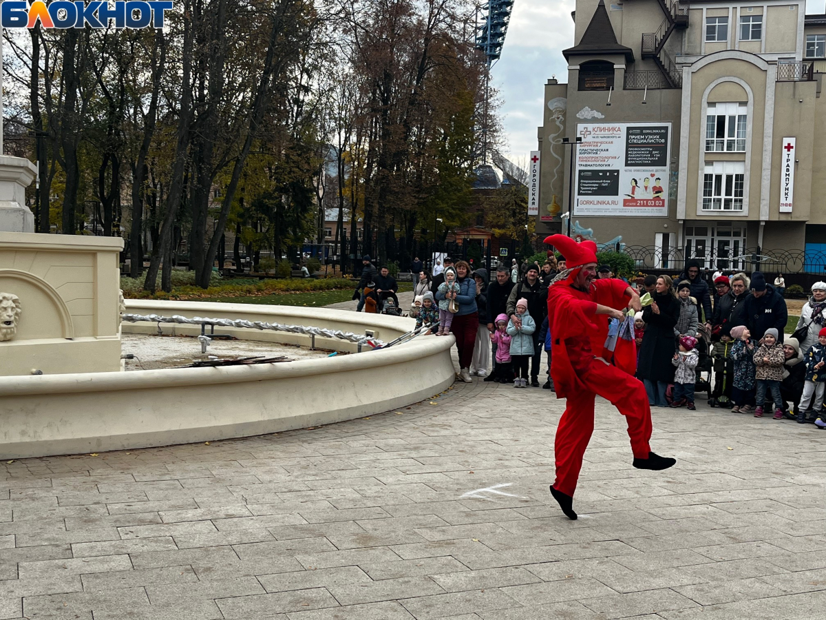 Первыми гостей фестиваля встретили актёры ВАУ театра со спектаклем «Коза и коса», который прошёл у зоны фонтана. Весёлая и добродушная постановка сразу задала атмосферу сказки и волшебства, в которую на 11 дней погрузится весь Воронеж.