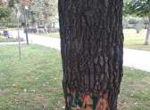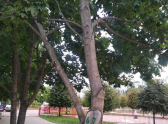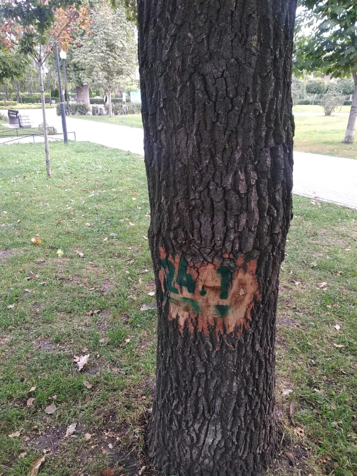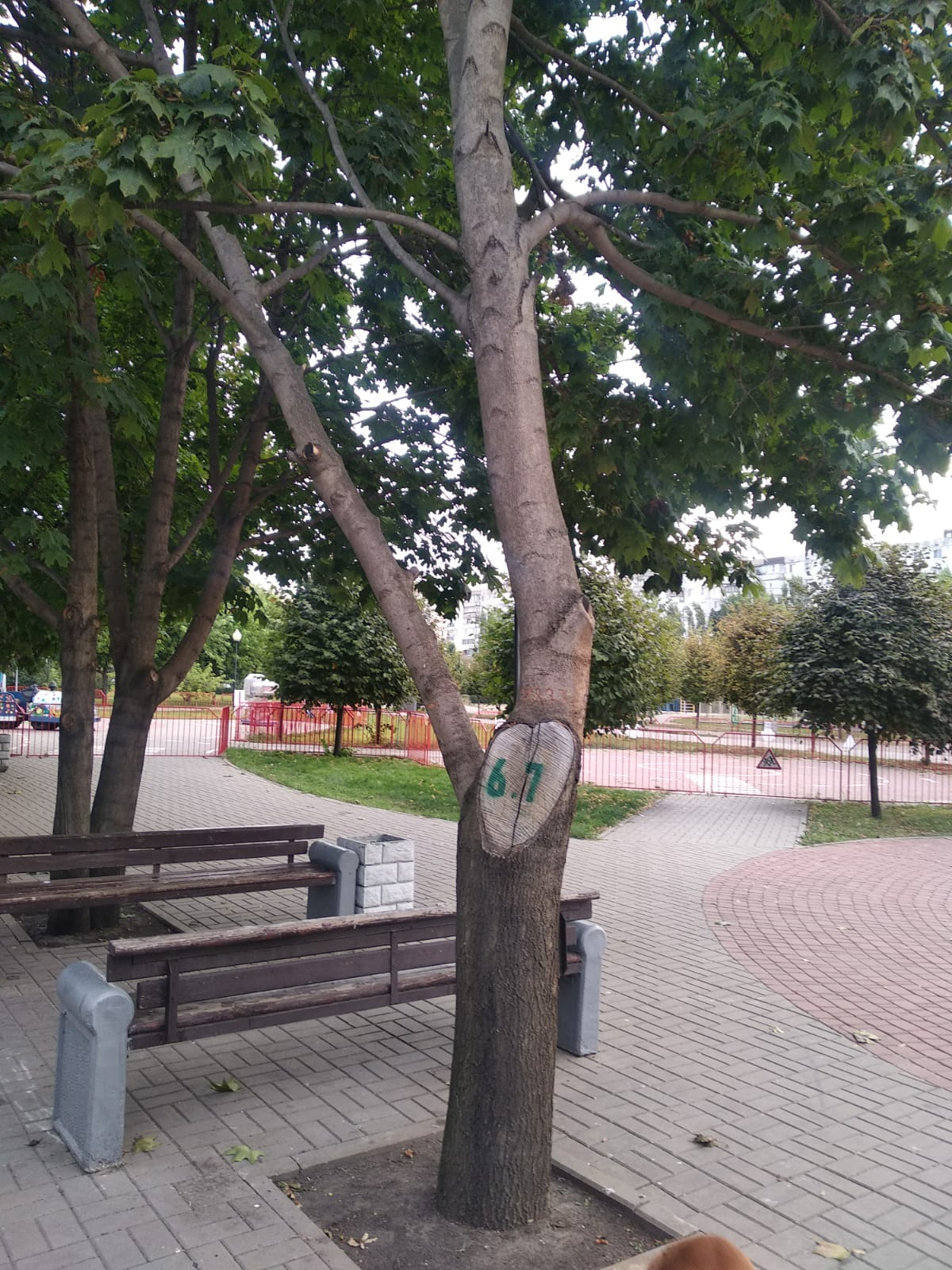 «Такое ощущение, что мэрия сошла с ума, здесь не Дубай. Деревья здоровые, взрослые, они живут по сотне лет, а дубы вообще по 800. Решили угробить единственный парк в Северном микрорайоне. Березы у нас вообще больше не растут, какие остались надо холить и лелеять. Дальний шикарный тополь – тоже к вырубке. Все лучшие огромные деревья - к вырубке. Я насчитала не менее 15-20. Работники парка, уборщики подтвердили, что пометили для вырубки. Вот даже на спиле клёна видно, что он здоровый. Береза и дуб вообще шикарные. И тополь, они же кору содрали для пометок, а кора везде здоровая»