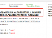 До 34,3 млн рублей готова потратить администрация Воронежа на оформление к зимним праздникам одной из главных городских территорий для массового отдыха граждан Адмиралтейской площади (Петровская набережная). Информация о проведении торгов по поиску подрядчика была опубликована на сайте госзакупок в четверг.
