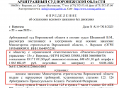 скриншот из документа Арбитражного суда Воронежской области
