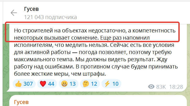 скриншот из ТГ канала Гусев, апрель 2025-го.