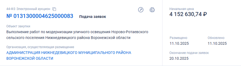 В системе госзакупок появился тендер на модернизацию уличного освещения в Норово-Ротаевском сельском поселении. В его состав входят два населенных пункта – Петровка и Глазово суммарно примерно на восемьсот человек. Располагается поселение в Нижнедевицком районе Воронежской области.