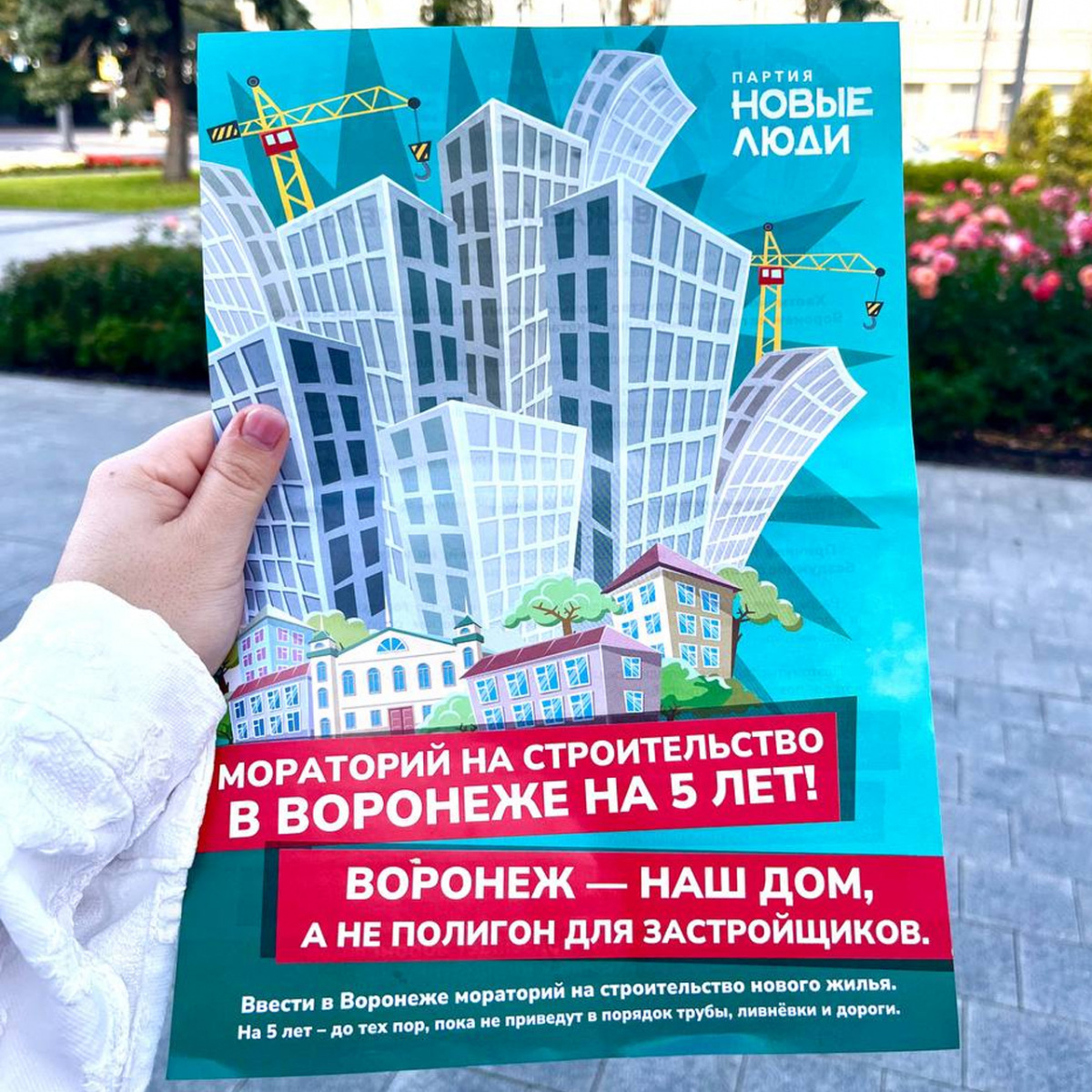 Миллионы квадратных метров в полупустых высотках «садятся» на старые сети, что ведёт к бесконечным коммунальным авариям. Об этом пишет в своей листовке партия «Новые люди» и выдвигает предложение - ввести мораторий на строительство нового жилья в Воронеже сроком на 5 лет.